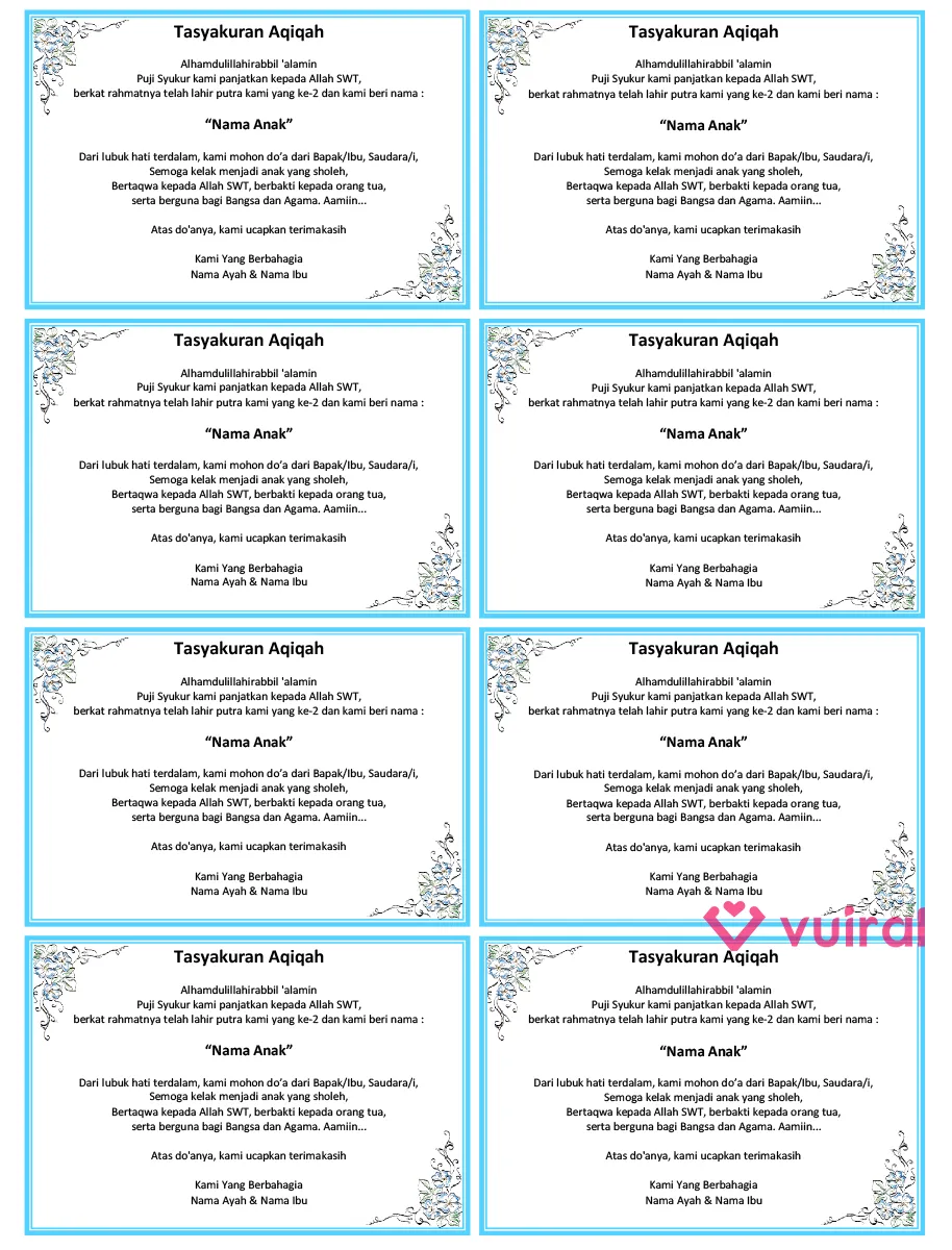 Link Download Template Desain Kartu Ucapan Kelahiran Bayi Aqiqah Kosong Bisa Diedit