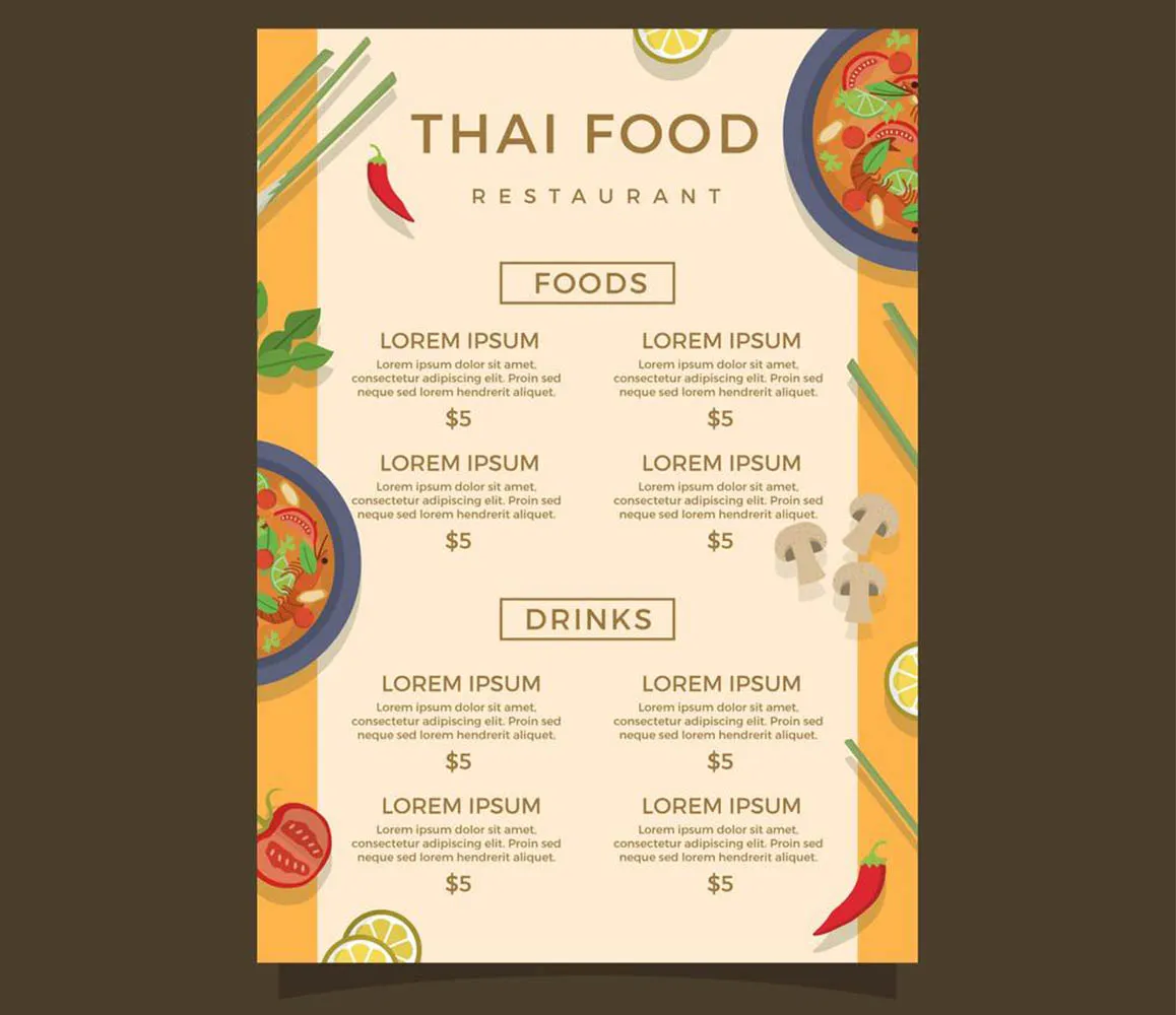 Untuk kalian yang sedang kesulitan dalam membuat contoh brosur makanan simple dan menarik, maka kalian bisa melihat contoh desain menu makanan keren dan kekinian berikut ini yang bisa kalian jadikan sebagai referensi.